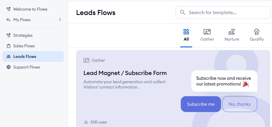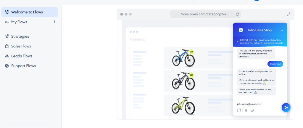 Lead flows stood out during testing. Solopreneurs selling memberships, courses, or digital products often need email subscribers more than instant buyers, and Tidio offers templates that support that strategy without adding a separate tool to your stack.