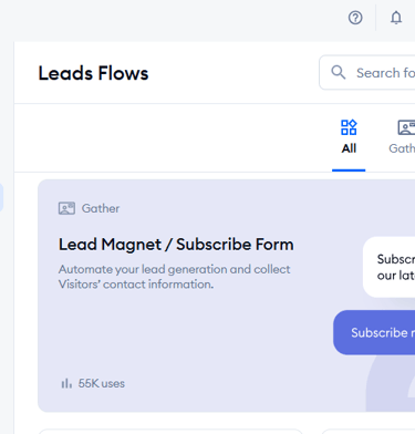 Flows are guided interactions that collect information, answer questions, or nurture potential customers—especially when you're offline. There are templates for leads, appointments, gated content, and social follow prompts.